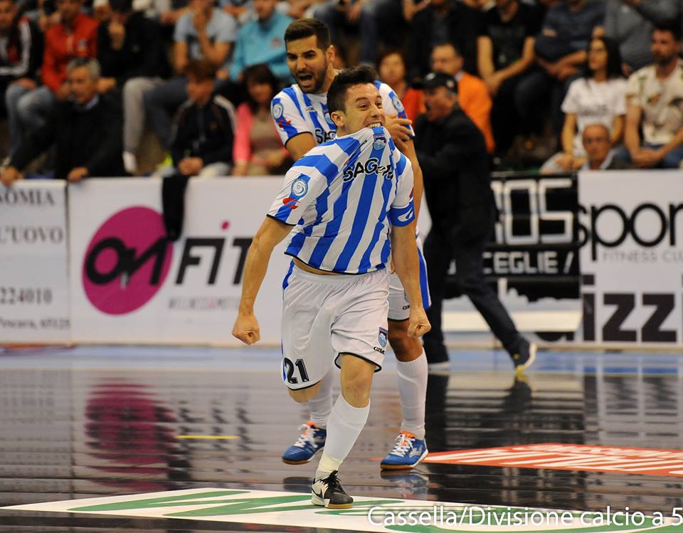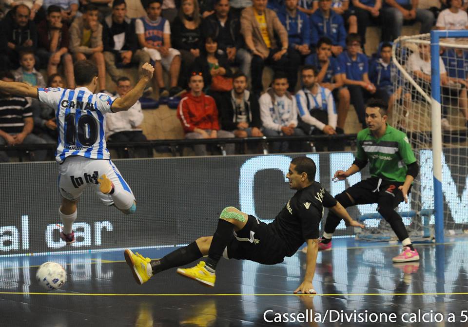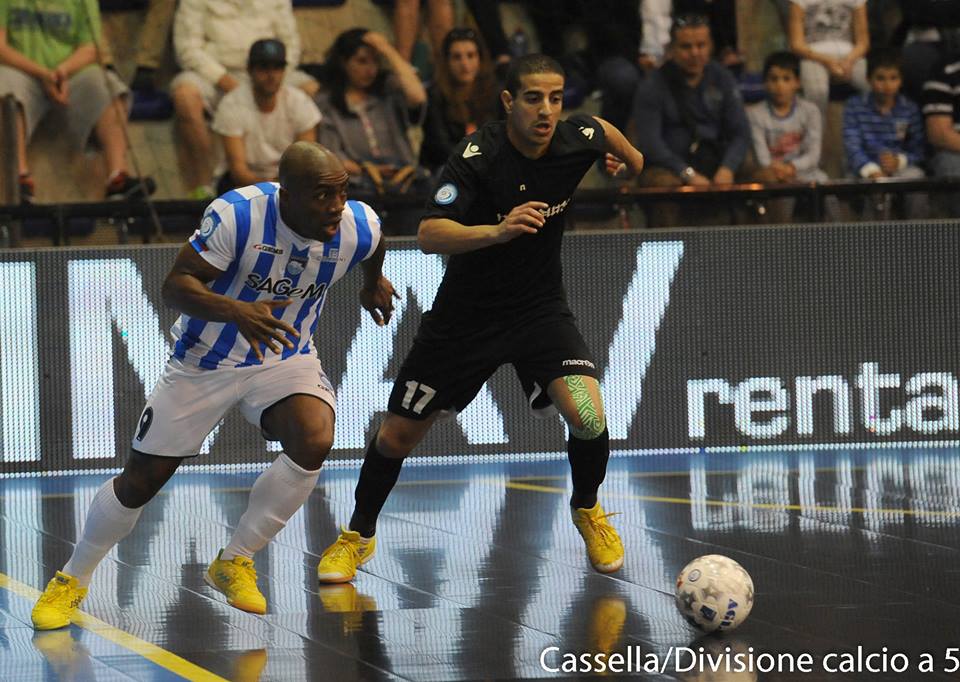 В нынешнем сезоне финал плей-офф проходит по схеме 1-2-2 с первой игрой на площадке команды с более высоким рейтингом. Нет смысла пояснять, сколь важно было для победителя регулярного чемпионата «Пескары» перед поездкой на две игры в Болонью обязательно дома взять первый матч. Не удивительно, что подопечные Фульвио Колини уже с первых минут начали штурм ворот голкипера гостей Лайона. Ровно 5 минут главный тренер «Каос Футзал» Леопольдо Капурсо наблюдал за тем, как отбивается его команда, после чего принял решение взять тайм-аут. Однако через две минуты Эспиндола в центре площадки проиграл силовую борьбу Николоди, и игрок «Пескары», выйдя один на один, переиграл Лайона. Но прошло всего 34 секунд, как счет стал равным – Кака, оказавшись слева на ударной позиции, спокойно обвел вратаря «Пескары» Капуоццо.