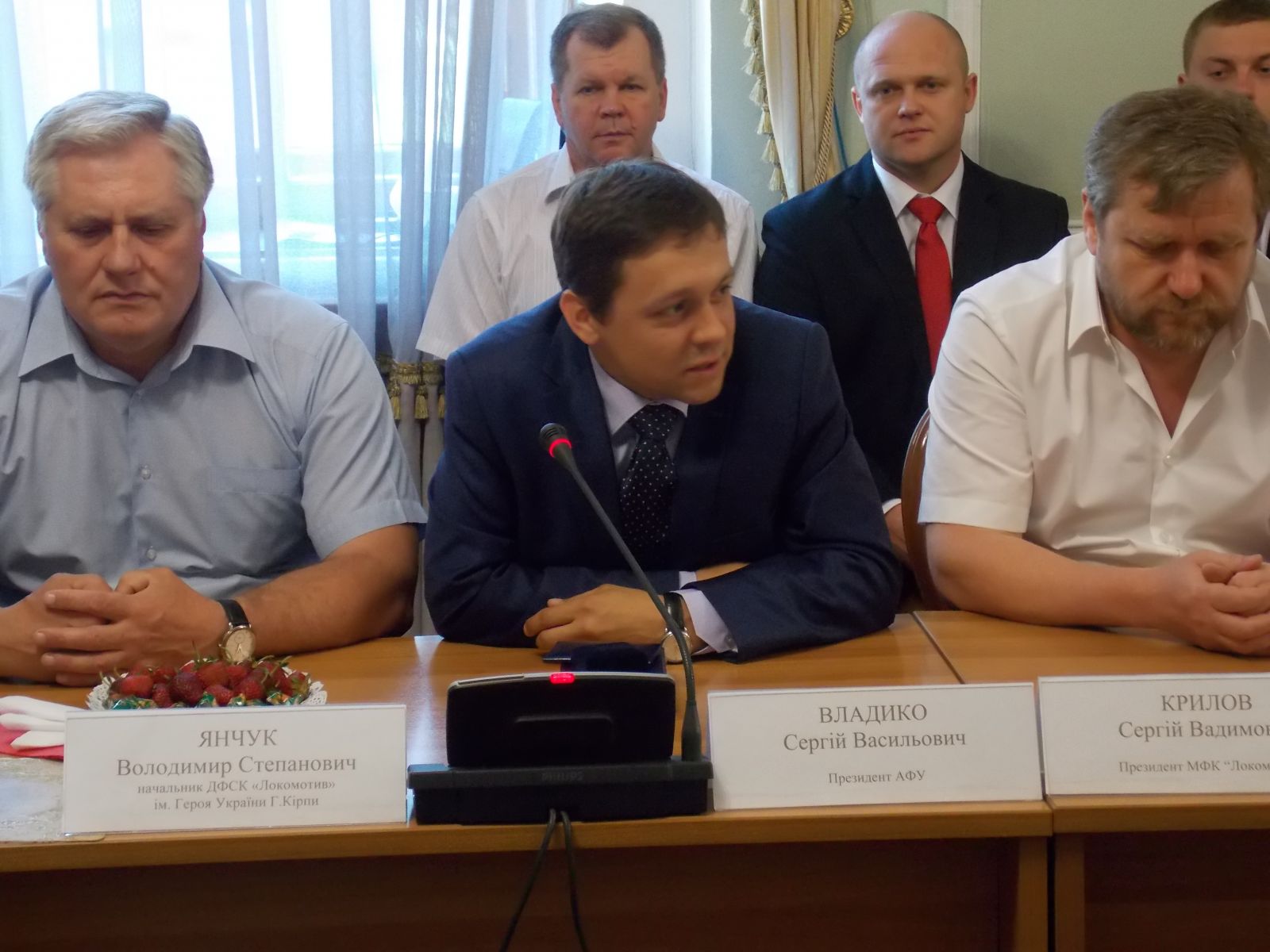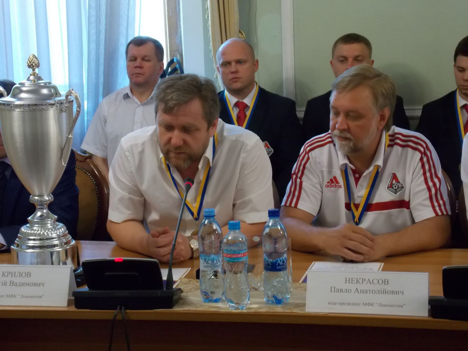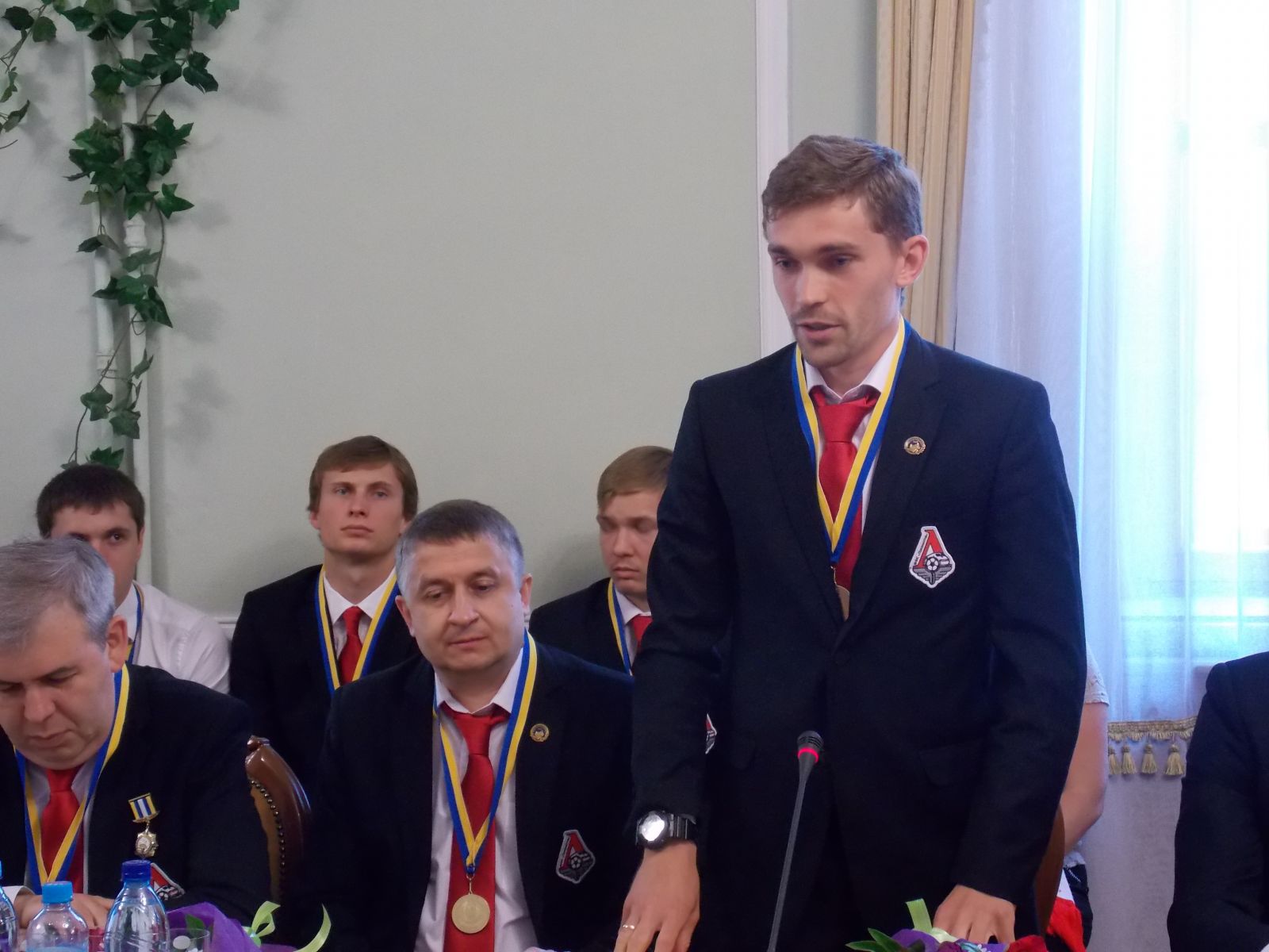- От себя лично, от всего руководства Южной железной дороги хотел бы вас поздравить с чемпионскими медалями. Хочу поздравить вас с тем, что вы третий раз подряд завевали чемпионское звание, и пожелать дальнейших успехов, чтобы наш харьковский «Локомотив» всегда был впереди. Хочу выразить отдельную благодарность главному тренеру Евгению Рывкину. Вы умеете держать свой стиль, умеете держать победный дух, и всех ребят всегда настраиваете только на победу. Выиграть чемпионат в третий раз – это большое достижение, но теперь надо сделать это и в четвертый, и в пятый раз. Но, конечно, нужно, чтобы мы победили и в Кубке УЕФА, для того мы готовы сделать все, что нужно команде. Кроме того, мы благодарны и нашему фан-клубу, который как на домашних, так и на выездных матчах поддерживает команду. Как футболисты были сильнее своих соперников на площадке, так и вы были лучше в поддержке команды на трибунах. Сезон для вас завершился – теперь нужно, чтобы вы хорошо отдохнули, набрались сил, и с новыми силами начали новый чемпионат. Он у нас сильный, достойный, и вы достойны быть его чемпионами.