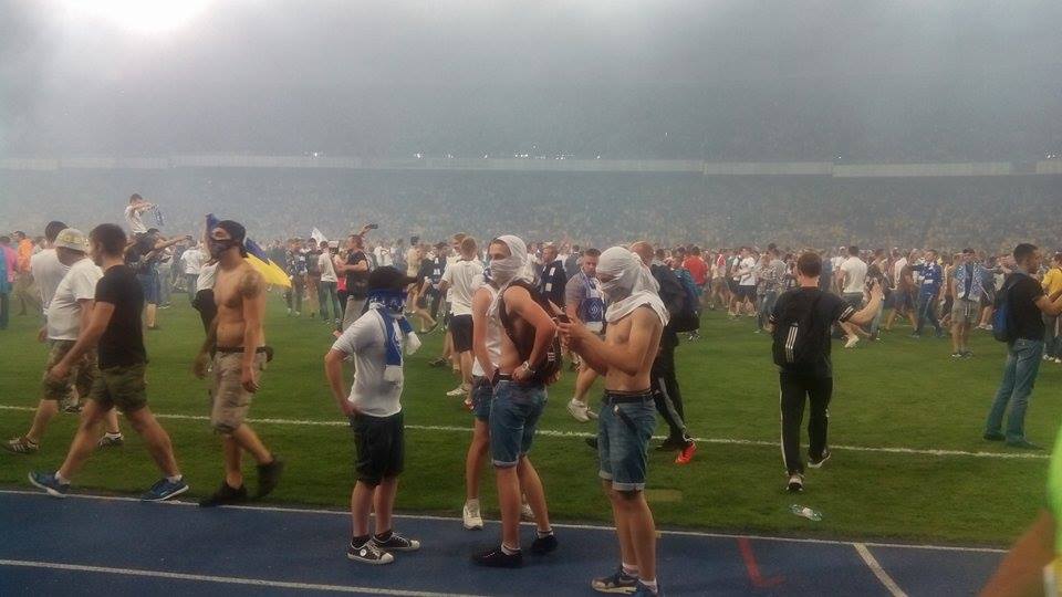 После окончания матча между «Динамо» и «Шахтером» болельщики вновь выбежали на поле НСК «Олимпийский» и сорвали награждение победителей и финалистов Кубка Украины.