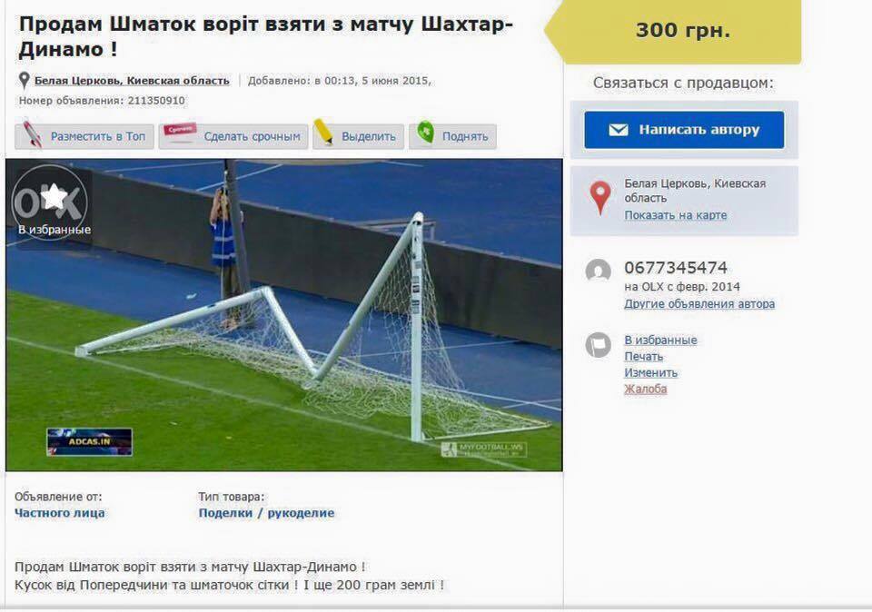 Фанаты, которые после окончания финального матча Кубка Украины выбежали на поле и умудрились сломать ворота на НСК «Олимпийском», уже распродают «трофеи».