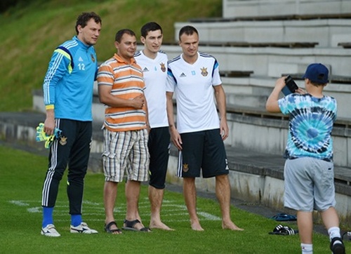 На тренування своїх співвітчизників завітали українці, що проживають в Лінці. Футболісти з задоволенням фотографувались та роздавали автографи гостям, а ті, в свою чергу, пообіцяли підтримати нашу команду під час контрольного поєдинку Україна-Грузія, що відбудеться 9 червня на місцевому стадіоні Gugl.