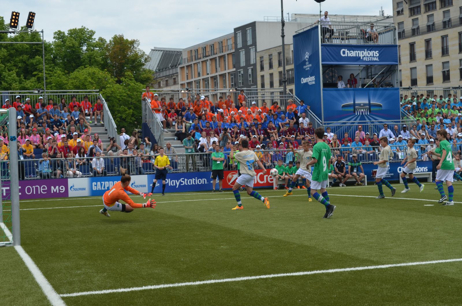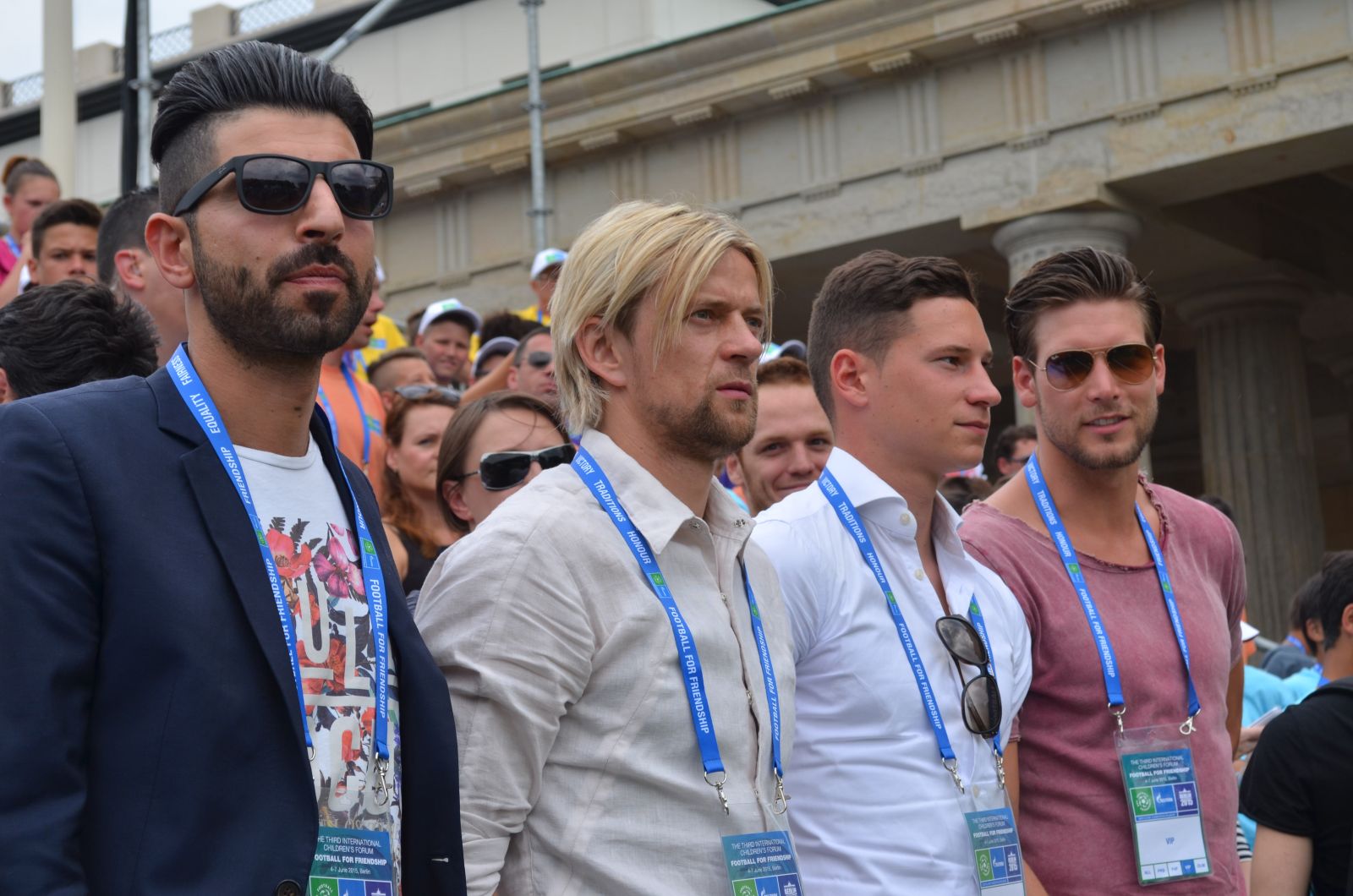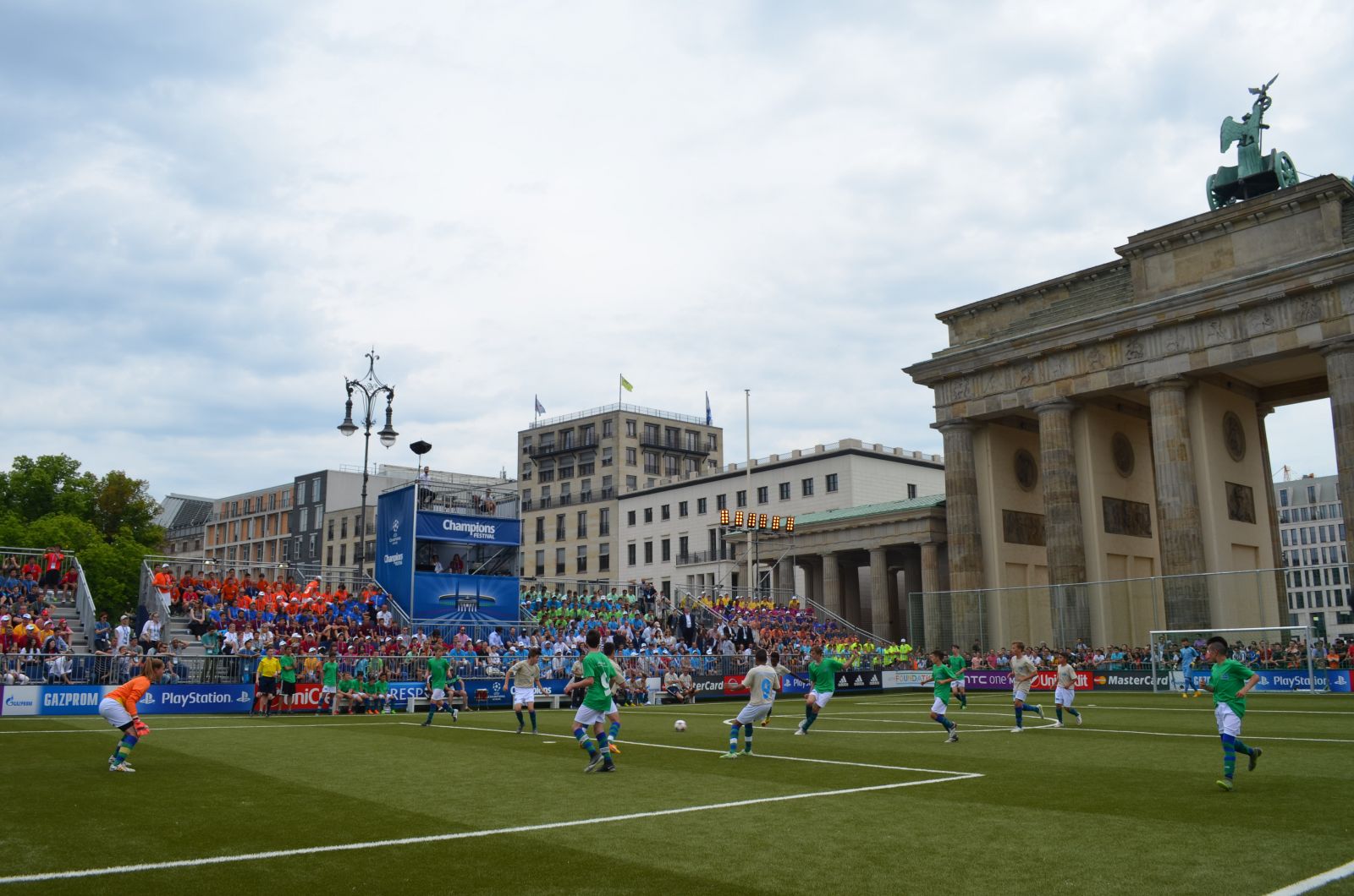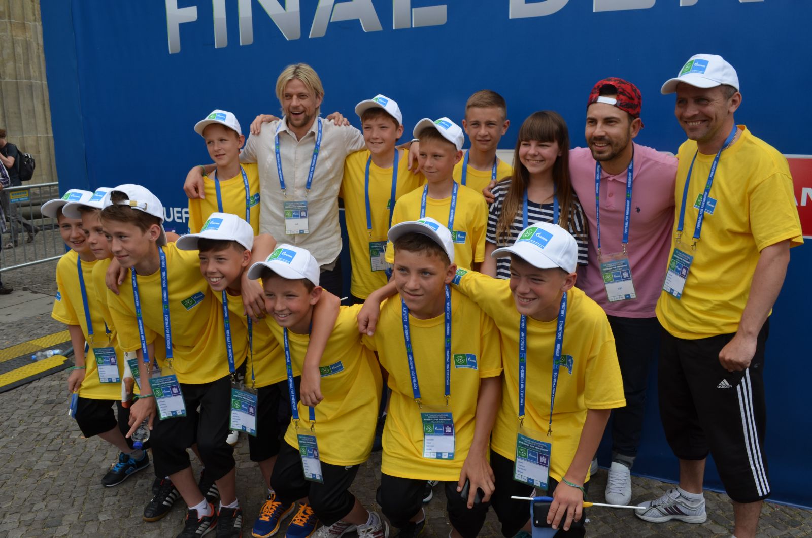 За 10 годин до великого фіналу просто на площі перед Бранденбурзькими воротам відбувся фінал дитячого турніру «Футбол заради дружби», де спеціальним гостем був наш капітан і рекордсмен збірної Анатолій Тимощук. Штучний газон розстелили просто на асфальті, а навколо спорудили трибуни. Вийшло доволі симпатично. Разом із Анатолієм Тимощуком привітати юних футболістів та футболісток (хлопці й дівчата грали разом у деяких командах) було запрошено й гравця німецького «Шальке» Юліана Дракслера.