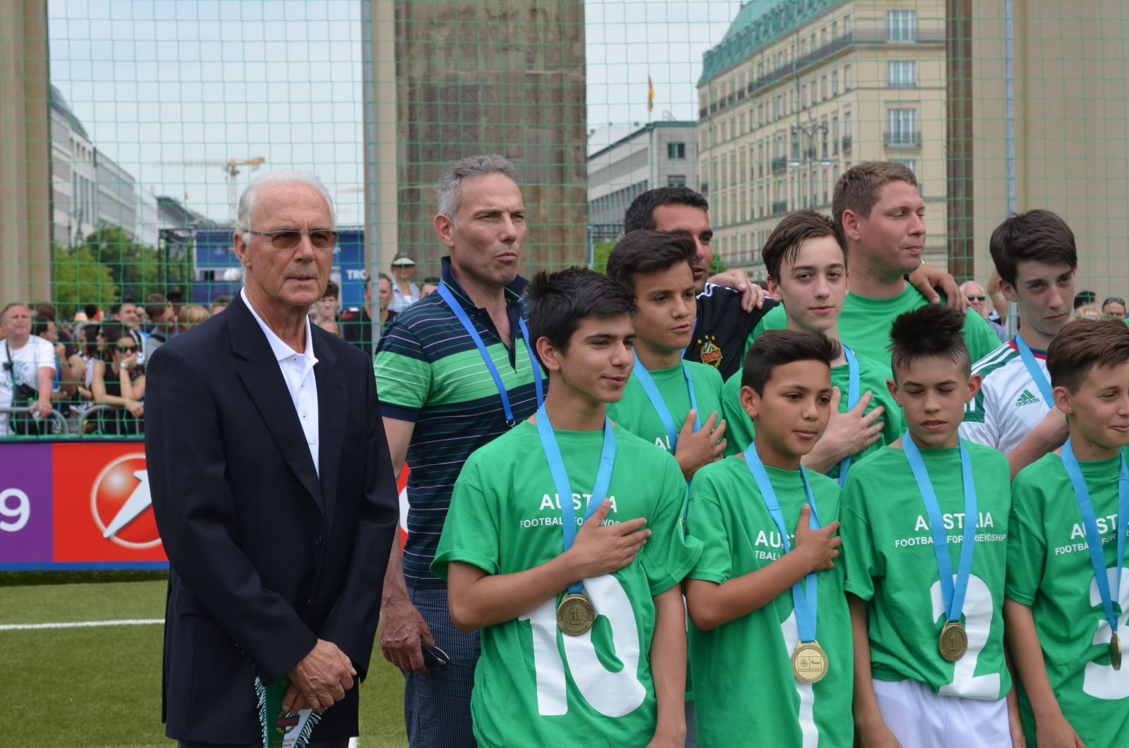 Переможців привітав і нагородив легендарний футболіст і тренер, а також глобальний амбасадор «Футболу заради дружби» Франц Бекенбауер, котрий побажав усім учасникам зберігати свою відданість мрії і за короткий час вийти на поле у такому ж вирішальному матчі, який вони за кілька годин мали спостерігати на «Олімпіаштадіоні» . Всі учасники та їхні тренери отримали від організаторів квитки на Фінал Ліги чемпіонів.