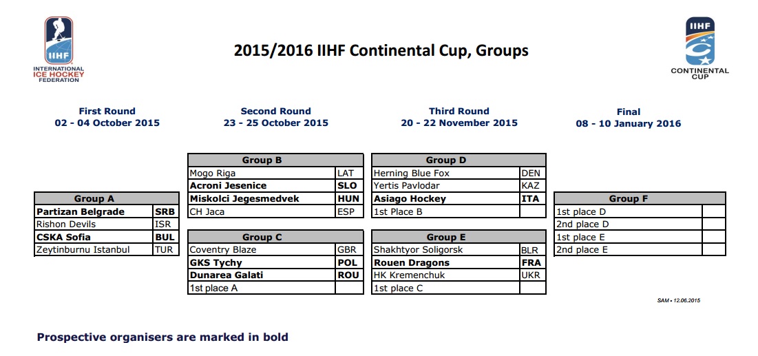 Им может стать кто-то из тройки клубов, которые начнут евросезон со второго раунда Континентального кубка: «Ковентри Блейз» (Великобритания), «ГКС Тыхы» (Польша) и «Дунаря» (Румыния).