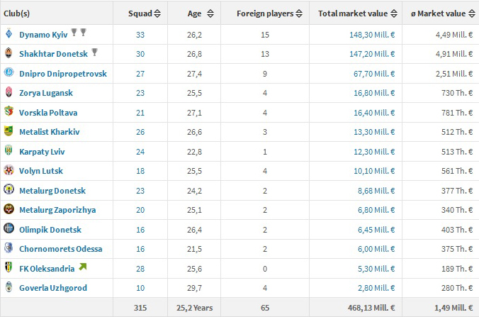 ...Но, по-прежнему, первый в плане средней стоимости игрока... Хотя в этом плане Динамо сделало существенный рывок - все игроки очень добавили к своей трансферной стоимости за последний год.