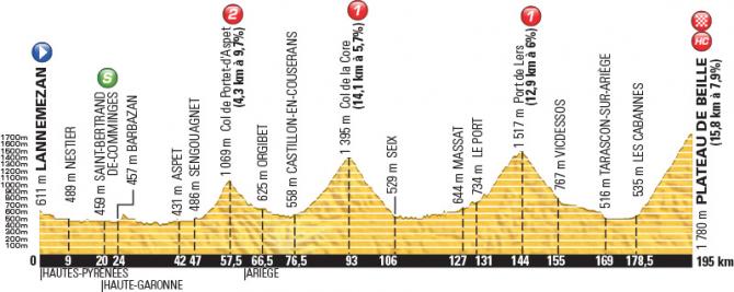 12 – последний день пелотона в Пиринеях. На гонщиков ждет четыре подъема с финишем на Plateau de Beille (15,8 км; 7,9%).
