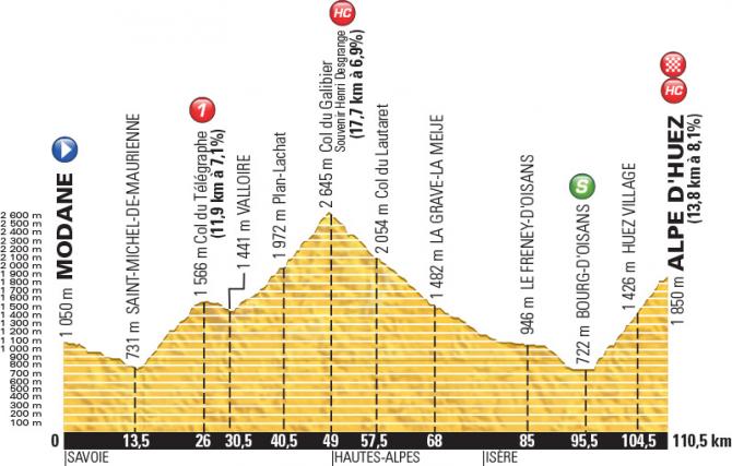 20 - последнее горный этап, как глазурь на торте - Альп д'Юэз (13,8 км; 8,1%). Это последняя возможность что-то изменить в генеральном зачете. Будем надеется, что до этого момента все еще будет борьба за победу в гонке.