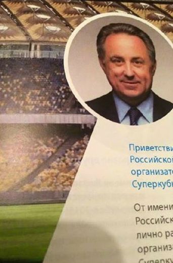 В программку, подготовленную к матчу за Суперкубок России, в котором сошлись «Зенит» и «Локомотив», вкралась досадная ошибка. Министра спорта Российской Федерации Виталия Мутко в ней изобразили… на фоне киевского НСК «Олимпийский», сообщают Druzi Dynamo. Крыша и триубны киевского стадиона, реконструированного перед Евро-2012, хорошо узнаваемы. Какое отношение Мутко имеет к НСК «Олимпийский» не уточняется.