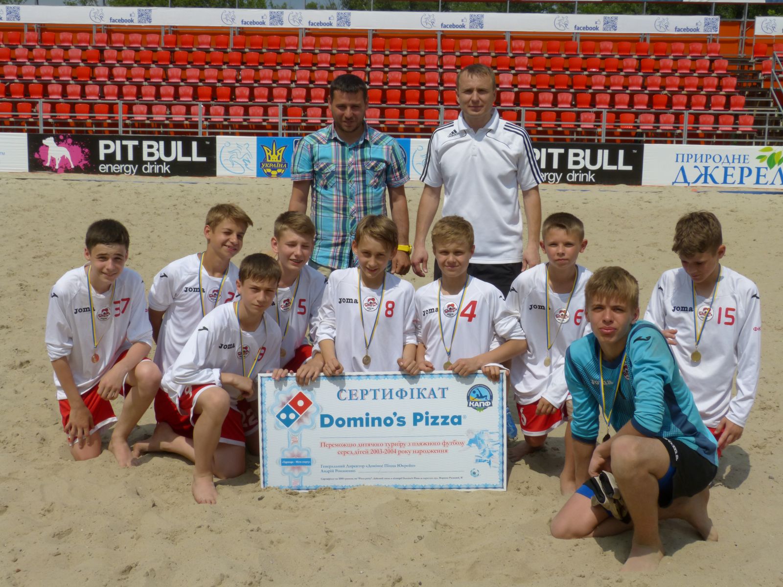 Вручали кубки, медали, и подарки от партнера турнира сети пицеррий «Доминос Пицца» вице-президент АПФУ Олег Ясинский и тренер по работе с молодежью Ассоциации пляжного футбола Украины Геннадий Лунин.