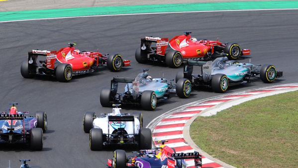 Старт гонки вийшов настільки несподіваним, наскільки можна собі уявити – спочатку стартові світлофори запалили жовті та зелені ліхтарі, сигналізуючи, що пілоти ще раз мають проїхати прогрівочне коло, причому видимої причини спочатку не було, та швидко виявилося, що повторний прогрів спровокував Масса, який зайняв неправильне місце на стартовій решітці. З другої спроби старт вийшов настільки видовищним, наскільки й жахливим для лідерів чемпіонату – обоє пілотів Мерседес втратили лідерство, причому якщо спритність Феттеля, що стартував за спиною у Льюіса, не стала великою несподіванкою, то Ряйкконен, стартуючи з п’ятого місця, зумів на виході з другого віражу обігнати Росберга – Феррарі повним складом очолила гонку. Стартовий провал змусив Хемілтона активно взятися за напарника, який також зумів пройти британця, от тільки поспіх у такій справі призводить до зворотних наслідків – намагаючись пресингувати Ніко вже у шостому повороті Льюіс, але запізно загальмував і здійснив поїздку гравієм і травою, відкотившись таким чином на 10-те місце. За «доброю» звичкою, по радіо чемпіон одразу звинуватив у цьому напарника, от тільки повтор промовисто довів, що Росберг нічого не робив такого, що б змушувало Хемілтона з’їжджати з траси, британець просто помилився, занадто пізно загальмувавши.