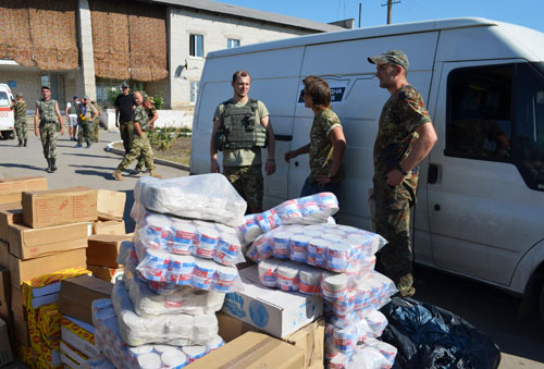 Основну роботу щодо збору гуманітарної допомоги нашим воякам здійснив Фонд Романа Зозулі «Народна Армія», яку в цьому підтримали усі інші учасники поїздки в зону АТО. Заздалегідь поцікавившись у військових, що саме є найбільш необхідним дня них, футбольні волонтери зібрали повний вантажний мікроавтобус питної води, предметів гігієни, харчових наборів, цигарок. Також прихопили чимало футбольної атрибутики – ігрові футболки збірників Романа Зозулі та Артема Федецького, матчеві вимпели національної команди, клубні вимпели ФК «Дніпро», шарфики збірної та клубу, в тому числі з фіналу Ліги Європи УЄФА. Особливе місце серед сувенірів займали ігрові м’ячі з фіналу Ліги Європи з автографами наших фіналістів та ігрові м’ячі із зображенням емблеми ФФУ.