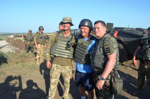 Головний тренер дніпропетровського «Дніпра» Мирон Маркевич разом зі своїм помічником у тренерському штабі, екс-гравцем збірної України Володимиром Єзерським, двома нинішніми представниками «синьо-жовтих» Артемом Федецьким і Романом Зозулею та прес-секретарем збірної України Олександром Гливинським відвідали Донецький прикордонний загін у Маріуполі та підтримали українських військових, що захищають терени нашої держави у зоні антитерористичної операції (АТО).