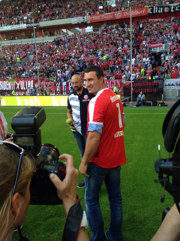 Чемпион мира по боксу Владимир Кличко решил посетить матч второй немецкой Бундеслиги между «Фортуной» и «Падерборном». Однако сделал это не просто так. Именно на дюссельдорфской «Эсприт Арене» Владимир проведет ближайший поединок с Тайсоном Фьюри.
