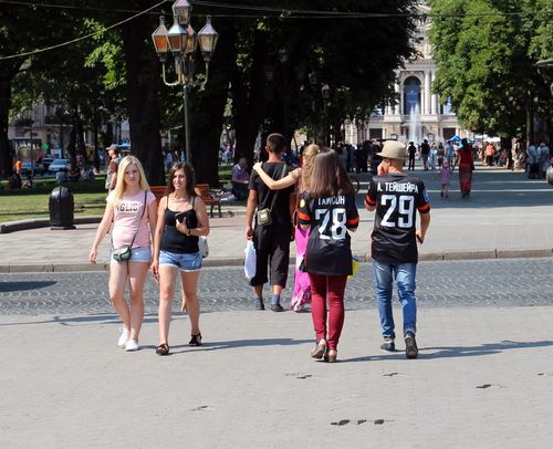 Прогуливаясь по городу, мы встретили только двоих болельщиков, одетых в футболки «Шахтера» (Тайсона и Алекса Тейшейры) и огромное количество фанов «канареек».