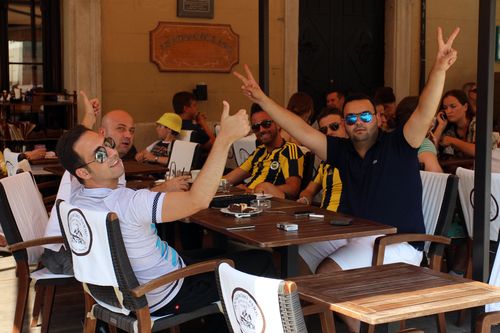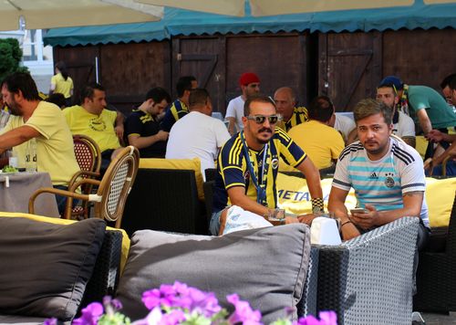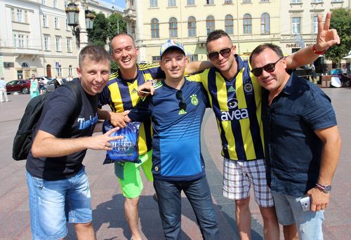 Центр Львова в день матча перекрасился в желто-темно-синие цвета «Фенербахче». Приезжие болельщики разбрелись по всей исторической части города - распевали речевки, фотографировались на фоне достопримечательностей и, конечно, не обделяли своим вниманием многочисленные кафешки и сувенирные лавки. Большинство гостей столицы Галичины былы одеты в домашнюю форму «Фенербахче», но были и те, кто не красовался атрибутикой, но по тому, как парни разогревались пивом и распевались, было понятно, что приехали они во Львов не ради местного колорита, а на матч Лиги чемпионов.