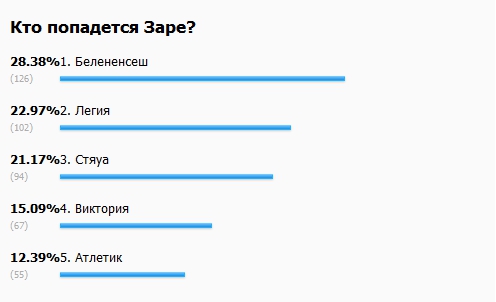 У «Зари» компания проще, но тоже достойная - «Атлетик» , «Виктория» (Плзень), «Стяуа», «Легия», «Белененсиш».