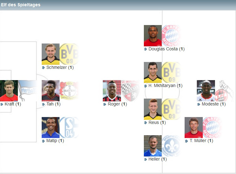Если же говорить об экс-игроке донецкого «Шахтере» Косте, то такой игрой он быстро заставит забыть о себе Франка Рибери, который жадно наблюдал за бразильцем с трибуны. К слову, слухи все чаще говорят о том, что Рибери вскоре объявит о завершении своей профессиональной карьеры, но, с частью, у него есть достойная замена. Дугласу Косте сходу удалось не только стать лучшим игроком матча, но и попасть в сборную тура по оценкам авторитетного издания Kicker. Попал туда и еще один экс-горняк Генрих Мхитарян, но об этом немного позже.