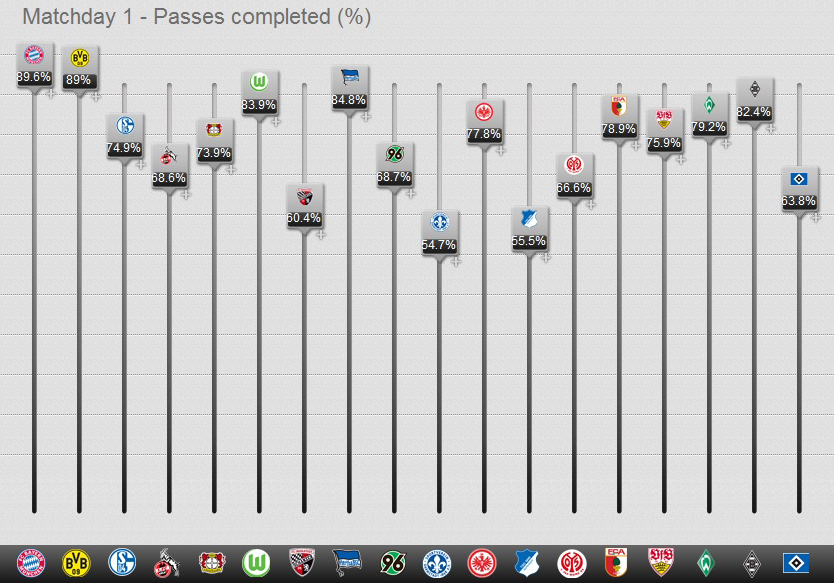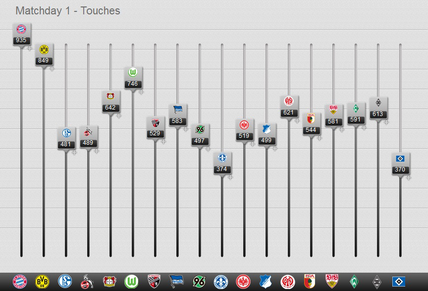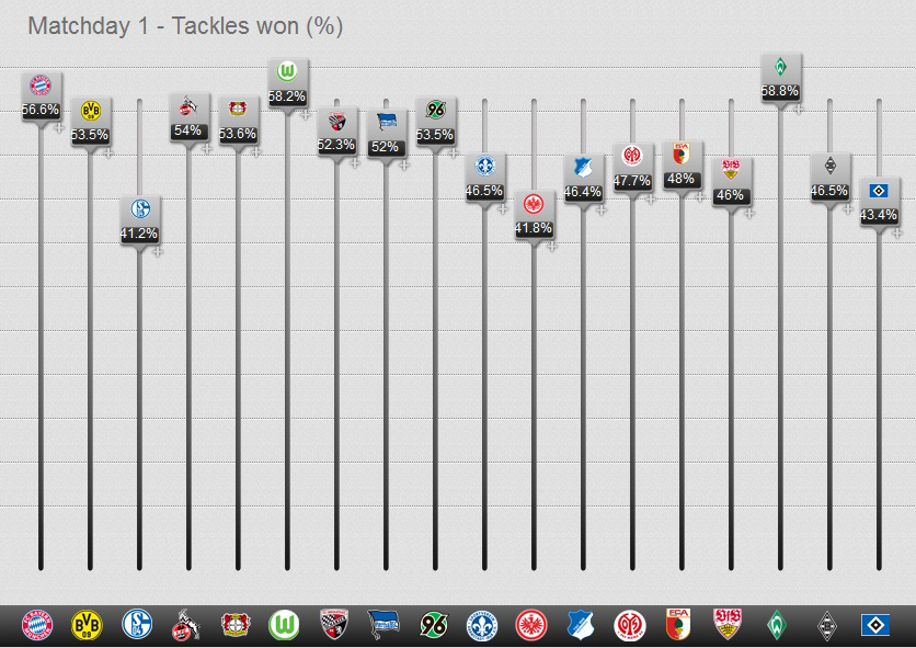 Где Видаль не смог показать высокого результата, так это в своем самом сильном качестве - отборе. Хотя произошло это скорее оттого, что «Гамбург» мало атаковал и больше защищался. Тем не менее, среди игроков, сыгравших в 1-м туре Бундеслиги, Видаль на 12-м месте с 16-ю отборами за матч.