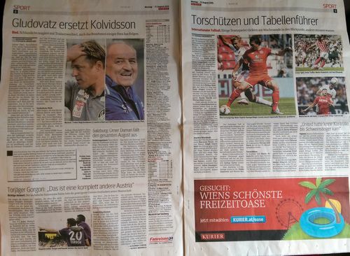 Это разворот местного «Курьера». Львиную долю спортивного раздела занимает австрийский чемпионат. Украинскому клуба пока уделили лишь «подвал» с представлением «Шахтера».