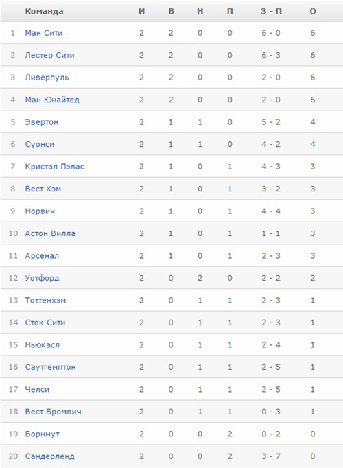 И пусть сыграно всего два тура, но не отметить тот факт, что «Лестер Сити» находится в когорте лидеров, просто нельзя. «Лисы» под руководством Клаудио Раньери в первом туре уверенно разобрались в родных стенах с «Сандерлендом», а во втором – переиграли «молотобойцев» на «Болейн Граунд». Тот самый «Вест Хэм», который неделю назад сенсационно одолел «Арсенал». Правда, из «того самого» «Вест Хэма» ничего не осталось, ведь команда Славена Билича провела крайне невыразительную игру, словно не зная, за счет чего обыграть соперника. За «Лестер» дебютным голом отличился Синдзи Окадзаки, а Рияд Марез забил уже третий гол в сезоне. Возможно, это лишь временная вспышка от «лисов», но хочется от них видеть такого же сумасшедшего продолжения.