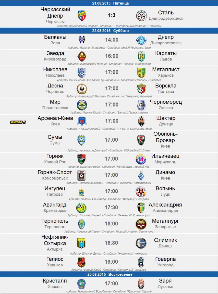 В пятницу, 21 августа, матчем «Черкасский Днепр» - «Сталь» Днепродзержинск (1:3) стартовал розыгрыш 1/16 финала Кубка Украины, основная часть матчей которого пройдет сегодня, 22 августа.