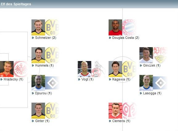Ну а пока «Бавария» также не вышла на пик своей формы, новичок мюнхенцев Дуглас Коста, складывается такое впечатление, играет на пределе своих возможностей и показывает лучший футбол в своей карьере. В Германии сейчас больше всего внимания уделяется экс-хавбеку донецкого «Шахтера», который здорово проявил себя в матче первого тура против «Гамбурга», забив гол и отдав результативную передачу, а теперь отличился двумя голевыми передачами на своих партнеров в матче против «Хоффенхайма» и вновь попал в сборную тура по оценкам авторитетного издания Kicker.