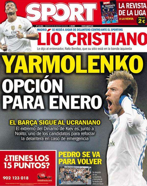 Чемпионы Испании, которые не могут регистрировать игроков до 1 января 2016-го года, намерены подписать с 25-летним футболистом предварительный контракт и оставить Ярмоленко в аренде в его родном клубе еще на полсезона. Об этом в частности пишет испанское издание Sport.es, называя Ярмоленко «новым Шевченко».