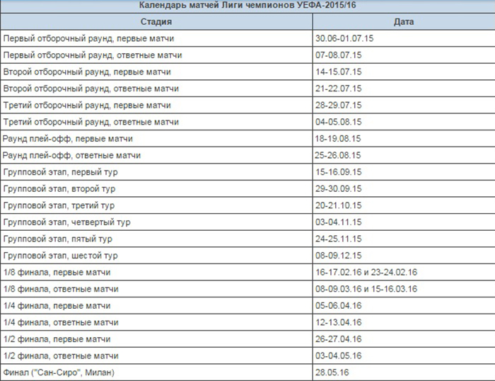 Результаты жеребьевки группового этапа Лиги чемпионов 2015/16