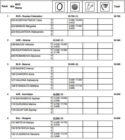 В командном первенстве от Украины сегодня выступали Ризатдинова и Мазур. По итогам двух выходов наши спортсменки занимают второе место, уступая россиянкам.