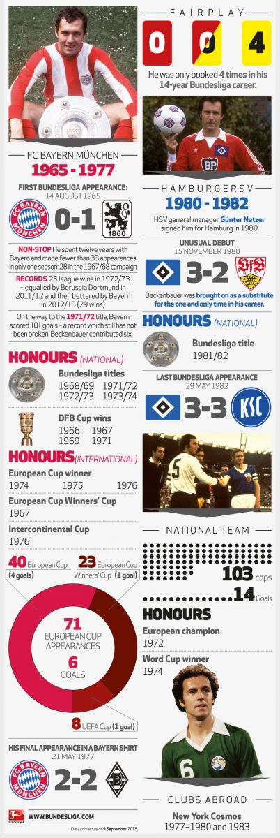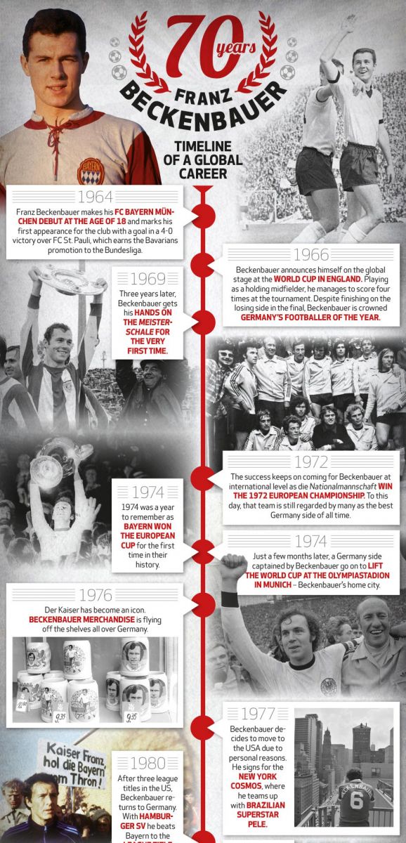 Но, есть такие люди, которые считают именно Беккенбауэра лучшим футболистом всех времен и они не ошибутся, если назовут сегодняшнего 70-летнего юбиляра лучшим защитником всех времен, лучшим футболистом своего времени и одним из самых талантливых тренеров и функционеров. Предлагаем вам вспомнить самые знаменательные моменты из жизни и карьеры Херра Франца! Alles Gute zum Geburtstag, Franz Beckenbauer!