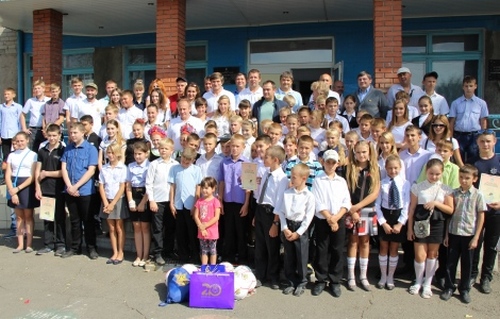 З нагоди Дня фізичної культури і спорту та тижня футболу УЕФА директор школи Зоя Семененко, а також учитель фізкультури Альберт Семченко були відзначені почесними грамотами ФФУ. Крім цього, вчитель фізкультури отримав із рук президента федерації набір для проведення уроку футболу (ігрову форму, фішки, маніжки, навчальну літературу для проведення тренувань). Закликаючи займатися футболом і хлопців, і дівчат, Андрій Павелко подарував по набору м’ячів і для одних, і для інших, символічно запросивши для отримання сіток з ігровими сферами учня молодшої школи та старшокласницю.