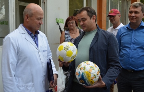 Потім Андрій Павелко навідався до Лікарні медичної швидкої допомоги Маріуполя, яка у нинішні часи стала військовим госпіталем. Головний лікар Сергій Орлеанський зазначив, що за час проведення АТО у медичному закладі була надана допомога понад 4 тисячам поранених військовослужбовців. Футбольні гості побажали нашим воякам швидшого одужання та повернення до мирного життя, з яким неодмінно асоціюється саме футбол.