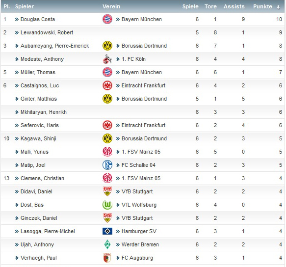 В книгу рекордов попадет не только поляк, но и экс-хавбек донецкого «Шахтера» Дуглас Коста, который после 6-ти туров чемпионата продолжает удерживать первую строчку в рейтинге результативности футболистов. В шести матчах сезона бразилец отметился одним голом и записал на свой счет девять результативных передач, чего не удавалось сделать еще ни одному новичку чемпионата Германии за данный период времени. Кроме того, эта победа для команды Гвардиолы важна вдвойне, учитывая тот факт, что очки в отчетном туре потерял главный конкурент мюнхенцев в борьбе за чемпионство, «Боруссия» Дортмунд.