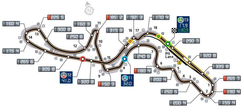 кваліфікація: 1'29.599 (2006, Феліпе Масса) гонка: 1'31.540 (2005, Кімі Ряйкконен) |