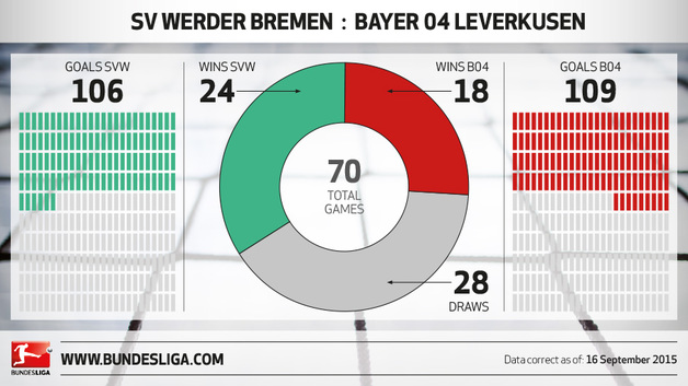 В последнее время игры «музыкантов» против «Байера» складывались более-менее удачно. Взять хотя бы прошлый сезон, в котором «Вердер» долгое время телепался в подвале турнирной таблицы, а «аптекари» заняли итоговое четвертое место. В Леверкузене Бремен смог вырвать ничью, хотя выигрывал по ходу матча со счетом 2:1, а в родных стенах не оставил шансов более грозному та тот момент сопернику - 2:1. На «Везерштадионе» «Байер» побеждал в последний раз в ноябре 2012-го года, увезя из Бремена уверенную победу - 4:1.