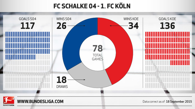В минувшем чемпионате «Кельн» смог дважды обыграть «Шальке», что не удавалось сделать команде с середины 80-х годов. Единственное, чего стоит опасаться болельщикам «Кельна» - это неуверенная игра команды на выезде в этом сезоне, где «козлы» смогли добыть всего 3 очка в 3-х играх, пропустив в свои ворота 9 голов. Во Франкфурте в середине сентября с командой Петера Штогера и вовсе случилась катастрофа, иначе нельзя назвать 6 пропущенных голов от скромного «Айнтрахта».