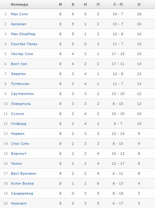 После 8 туров на счету действующего чемпиона всего 8 очков (2 победы, 2 ничьих и 4 поражения). Таким образом «Челси» показал худший старт сезона с 1978 года. Также отмечу, что в сезоне 1978/79, когда «аристократы» набрали 8 очков в 8 матчах, лондонская команда по итогам сезона вылетела из АПЛ, заняв 22-е место. Сейчас, разумеется, вылет не грозит «Челси», но если не стабилизируется игра и результаты, лондонцы рискуют оказаться за пределами ТОП-4. Любопытно, что ни один английский клуб, имевший 8 очков после 8 туров, как сейчас «Челси», не финишировал в Премьер-лиге выше 5-го места.