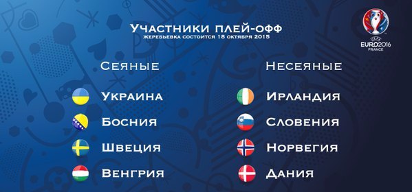 Стали известны возможные соперники сборной Украины в плей-офф Евро-2016, жеребьевка которого состоится в воскресенье, 18 октября.