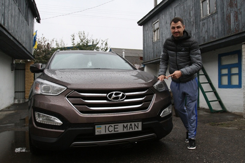 Во дворе бросается в глаза авто Виктора с номерами ICE MAN - «Ледяной человек» – прозвище бойца. Их подарил Постолу товарищ после чемпионского боя с Матиссе. «Я за рулем с 18 лет, - рассказывает 31-летний Виктор. - Первое авто - «копейка». Потом были «Сенс», «Шевроле Авео», «Рено Кенго», и сейчас уже «Хюндай Сантафе». Следующей будет «Ренджровер» (смеется).