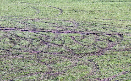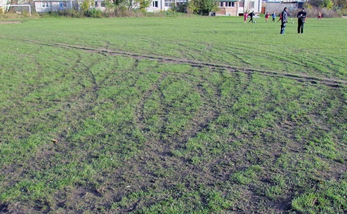 Газону спорткомплекса «Колос» колеса автомобилей нанесли серьезный ущерб