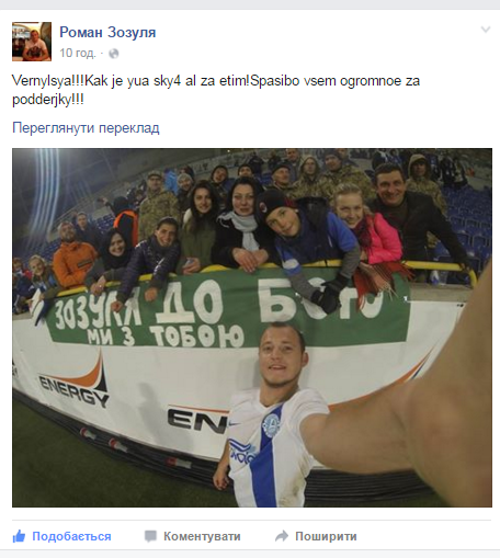 После матча Зозуля сделал селфи с болельщиками, поблагодарив тех за поддержку.