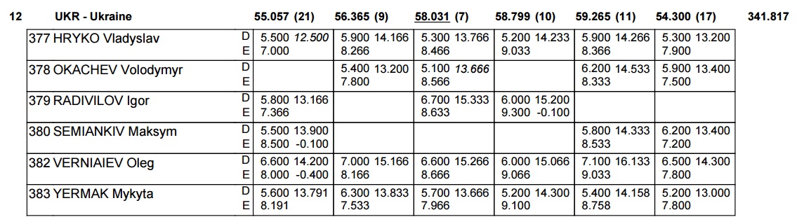 Сборная Украины не попала в финал многоборья на ЧМ в Глазго