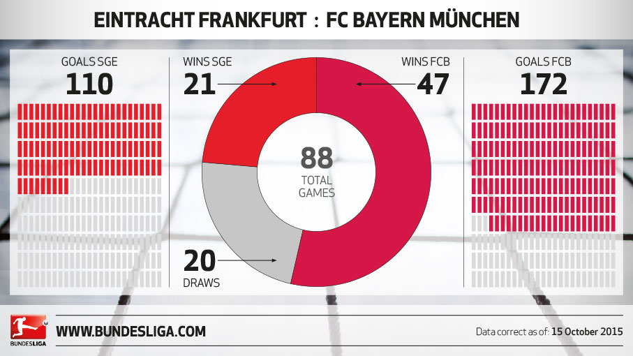 Еще ни одной команде в истории Бундеслиги за стартовые 10 туров не удавалось забить столько голов, сколько раз это сделала «Бавария» (33 гола). Последние 6 матчей против «Франкфурта» «Бавария» обязательно побеждала, не пропустив в свои ворота ни одного гола. Еще ни одной команде в Германии не удавалось выиграть 7 матчей кряду против одного соперника, не пропустив в свои ворота. В последний раз «Айнтрахт» побеждал мюнхенский клуб в марте 2010-го года на своем поле, благодаря голам на 87-й и 89-й минуте в исполнении Жувеля Тсумо и Мартина Фенина - 2:1.