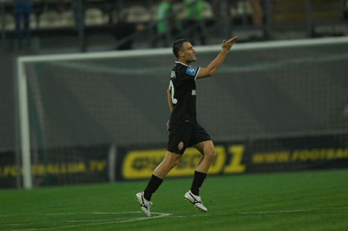 На фото: Желько Любенович празднует забитый гол киевскому «Динамо»,
