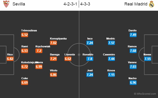 Насыщенной выдалась неделя для обеих команд, кульминацией которой станет поединок между собой. Для «Севильи», победа над «Реалом» – это шанс стать первой командой в этом сезоне, которой удалось обыграть и «Барселону», и «Реал». А «сливочные», в случае победы, сохранят за собой первое место, на которое им в конце концов удалось подняться. Рассчитывать мадридцы не смогут на помощь травмированного Марсело и, по понятным причинам, на Бензема. У «Севильи» на поле не выйдут Пареха, Каррису и Бету.