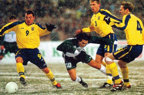 Первый матч наша сборная снова проводила на выезде - в Любляне на стадионе «Бежиград». Команда Йожефа Сабо считалась фаворитом противостояния, и изначально все складывалось, как нельзя лучше. Контролируя ход встречи, украинцы в середине первого тайма вышли вперед: Шевченко, получив пас пяткой от Кандаурова, обводящим ударом отправил мяч в дальний угол ворот. В начале второго тайма за Словению забил их главный голеадор – Златко Захович, но даже 1:1 на выезде перед ответной игрой вселяли оптимизм. Так было до 85-й минуте, пока не случился самый большой ляп в истории нашей сборной. Шовковский покинув штрафную, выбил мяч прямо на ногу Миленко Ачимовичу – и тот забил гол всей своей жизни.