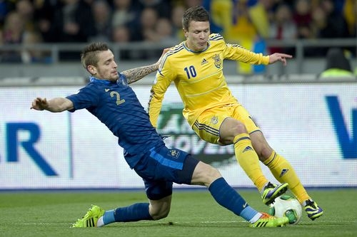 Украина: Пятов, Ракицкий, Кучер, Хачериди, Кобин, Михалик, Тимощук, Ротань (Ярмоленко, 46), Гусев (Алиев, 83), Шевченко, Милевский.