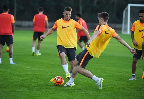Тренировка сегодня проходила по нестандартной программе. Комплекс упражнений, предложенных тренерским штабом, был построен на соревновательном моменте. После традиционной разминки футболисты разделились пополам и устроили… матч в одни ворота. Перед каждой командой стояла задача – нанести по 10 ударов по воротам соперника. Соответственно у оппонента должна была качественно сработать защита. Тренерский штаб вел счет по особой системе, учитывающей не только голы, но и работу обороны.