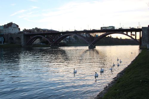 Местные жители, правда, не спешили снимать куртки, но приезжим из «северного Киева» было вполне комфортно в рубашках или пайтах, одетых на футболки. Сам Марибор не спеша можно вдоль и поперек обойти за несколько часов. Основные достопримечательности, впрочем, расположены вдоль реки Дравы, с мостов которой открывается роскошный вид на уютные улочки центральной части города. На самой реке живет большое количество практически ручных лебедей, которых с удовольствием подкармливают местные и туристы. В июле на набережной проходит один из крупнейших в Европе музыкальных фестивалей. В это время, как рассказал экскурсовод, там яблоку негде упасть. В остальном там так же спокойно, как и в любой другой части города.