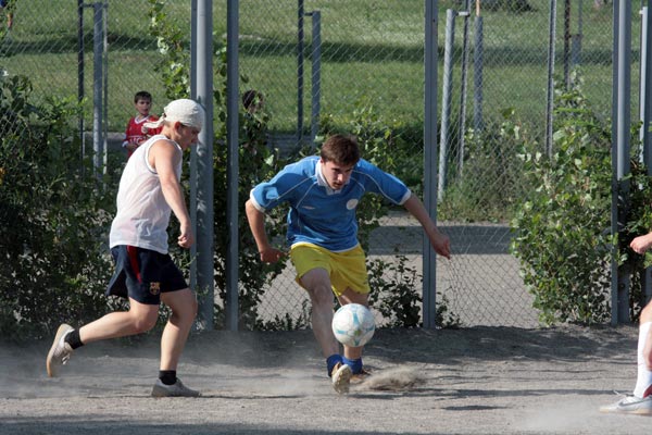 Второй тайм начался обескураживающе для нашей команды - Сергея Панасюка остановить в этот день было просто невозможно. И в итоге еще два гола были записаны в архив выступлений известного комментатора и грозного форварда Сергея Панасюка. 5:3. Наша команда бросилась отыгрываться, но высокая температура на улице и палящее солнце заставили игроков обеих команд с каждой минутой все чаще и чаще проводить замены, иначе усталость давала себя знать, что естественно сказывалось как на скоростях в матче, так и на реализации моментов. У нашей команды их было как минимум с десяток, но мяч в ворота не шел!